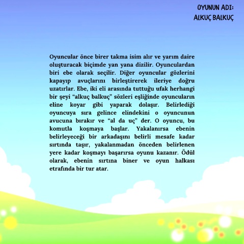 bir şeyi “alkuç balkuç” sözleri eşliğinde oyuncuların