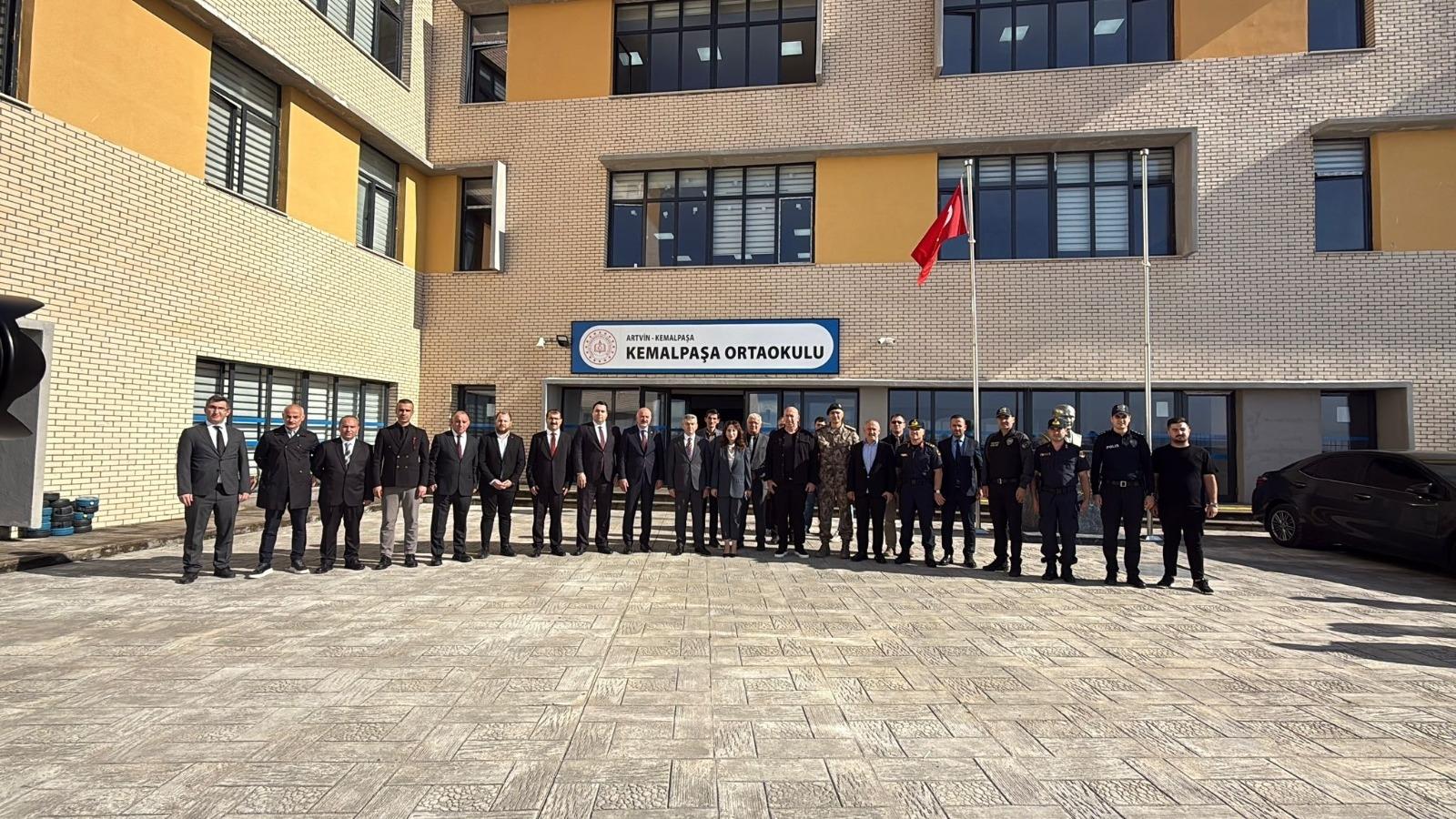 Artvin'in Kemalpaşa ilçesinde 2025-2026 eğitim-öğretim yılıyla birlikte yeni binasında eğitime başlayan Kemalpaşa İlkokulu ve Ortaokulu, protokol üyelerinin katılımıyla ziyaret edildi. Artvin Valisi Sayın Turan Ergün başkanlığındaki heyette; Vali Yardımcısı Berker Çırak, Kemalpaşa Kaymakamı Pınar Ayaz, AK Parti İlçe Başkanı Yener Balkaya, İl Emniyet Müdürü Murat Güneş, İl Genel Sekreteri Kemal Demirel, Gençlik ve Spor İl Müdürü Hasan Kara ve İl Milli Eğitim Müdürü Fahri Acar yer aldı.