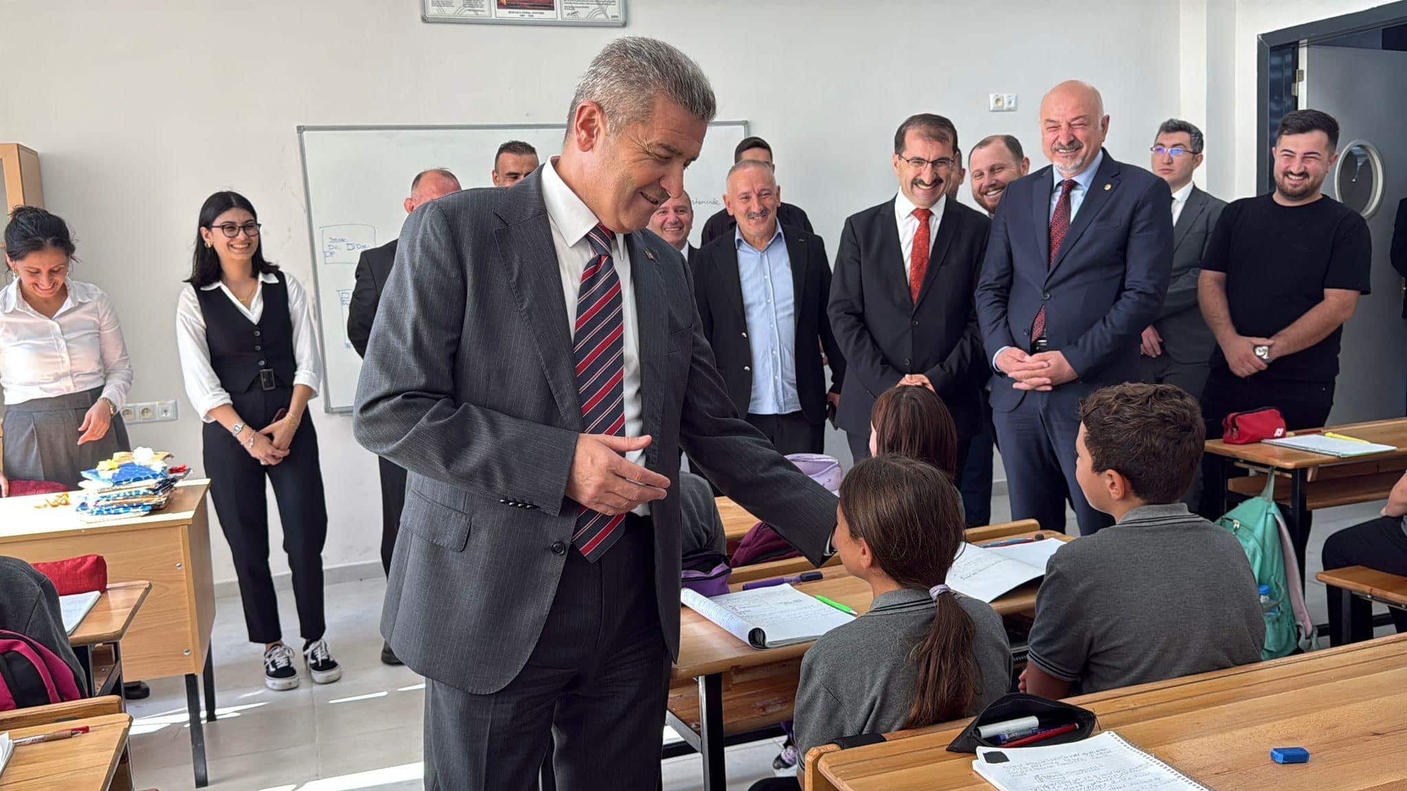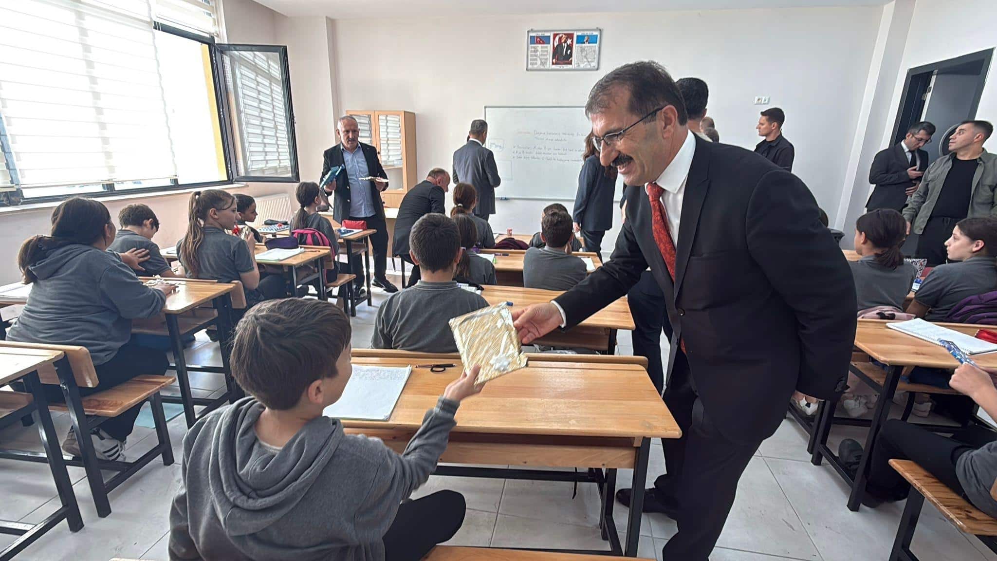 Ziyaret kapsamında sınıfları ziyaret eden öğrencilerle bir araya gelen Sayın Ergün ve beraberindeki heyet, çocuklara çeşitli hediyeler verdi. Öğrencilerle samimi diyaloglar kuran protokol üyeleri, öğretmenler odasında da öğretmenlerle sohbet ederek görüş ve önerilerini dinledi. Okulun çeşitli birimleri yerinde incelenirken, yeni eğitim yuvasının ilçeye ve öğrencilere hayırlı olması temennisinde bulunuldu.