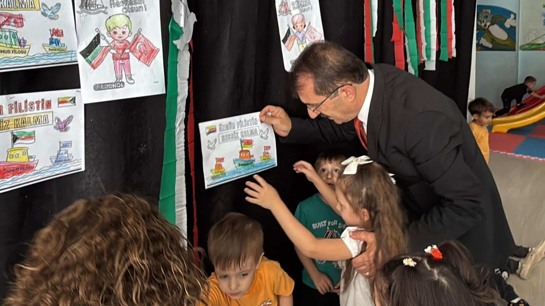 Filistin Farkındalık Etkinlikleri kapsamında, İl Milli Eğitim Müdürü Fahri Acar, Eğitim Müfettişleri Başkanı Sercan Babaoğlu ve Şube Müdürü Ferda Bulut ile birlikte Zübeyde Hanım Anaokulunda gerçekleştirilen "Nehirden Denize Özgürlük" temalı etkinliğe katıldı.